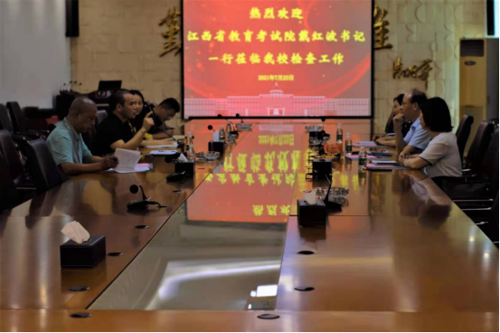 7月23日上午,省教育考试院党委委员、纪委书记戴红波,厅直属机关党委副书记、机关纪委副书记罗赛琴,省教育考试院党群处干部卜湘玲一行三人来我校检查指导2021年高招录取工作。校党委副书记唐新强、招生就业处处长王敏、纪检监察室副主任廖小华陪同考察了录取现场,并举行了座谈。