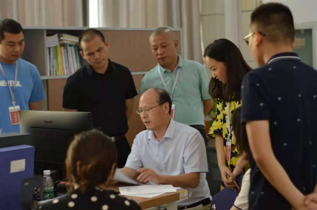 在思贤楼录取现场,检查组一行同工作人员进行了交流,详细了解我校的录取流程,询问录取进展,查阅录取材料,从招生领导机构、纪检监察制度、招生录取流程、通知书发放、安全保密等关键环节提出了要求和意见,同时对我校高招录取工作的组织和实施给予了肯定。