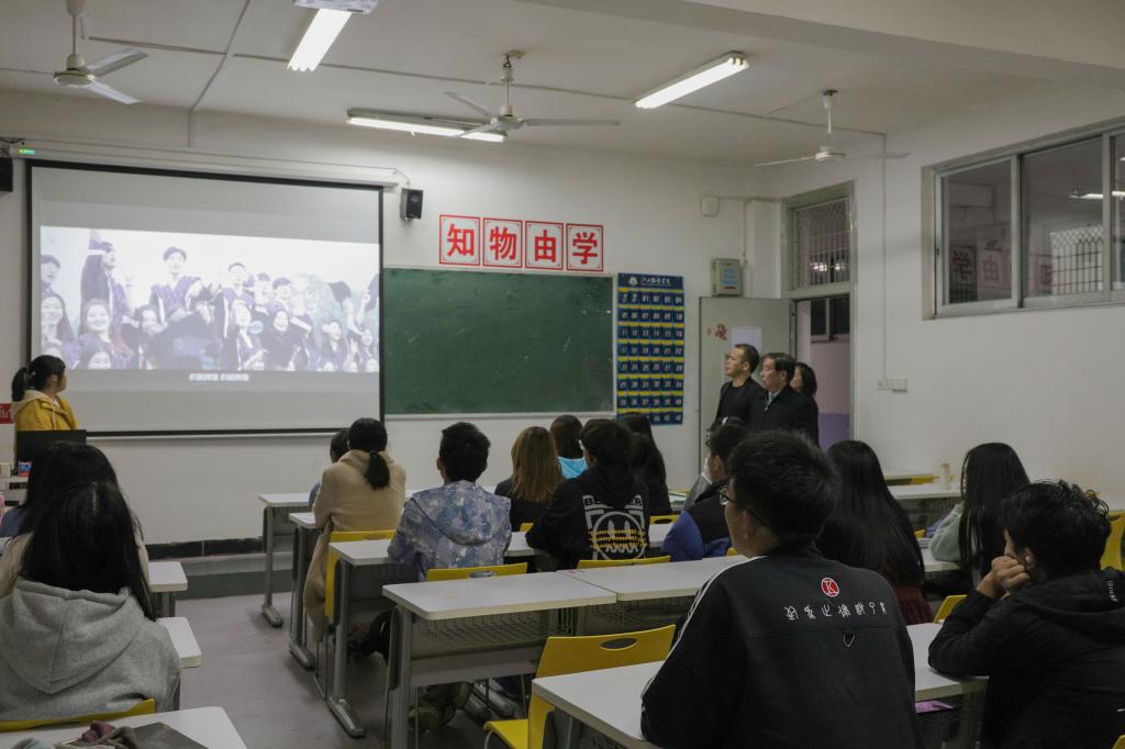 校长薛家宝、党委副书记唐新强,学工处、宣传部及各学院党总支书记现场查看班会课组织。校长薛家宝深入班级,带领学生共同唱响校歌《书写华章,织就辉煌》,“一笔一画绘版样,千针万线织霓裳;缝绣镶缀注真情,冠履章服润华邦......”,曲长三分多钟,歌词优美,催人奋进;旋律婉转悠扬,充满活力,充满希望。全校所有班级共同唱响校歌,激情飞扬,气势如虹。这首恢弘大气的校歌一经传唱,就火了起来,校园沿途随时能听到欢快的哼唱,校园氛围也跟着活了起来。这首由薛家宝校长亲自作词谱曲的校歌《书写华章,织就辉煌》,让勤信博雅的校训融化在行动中,把对学校的热爱、对理想的追求都融入到了动听的校歌声中,唱出了激情,唱出了力量,唱出了团结,唱出了时尚校园最动听的声音。