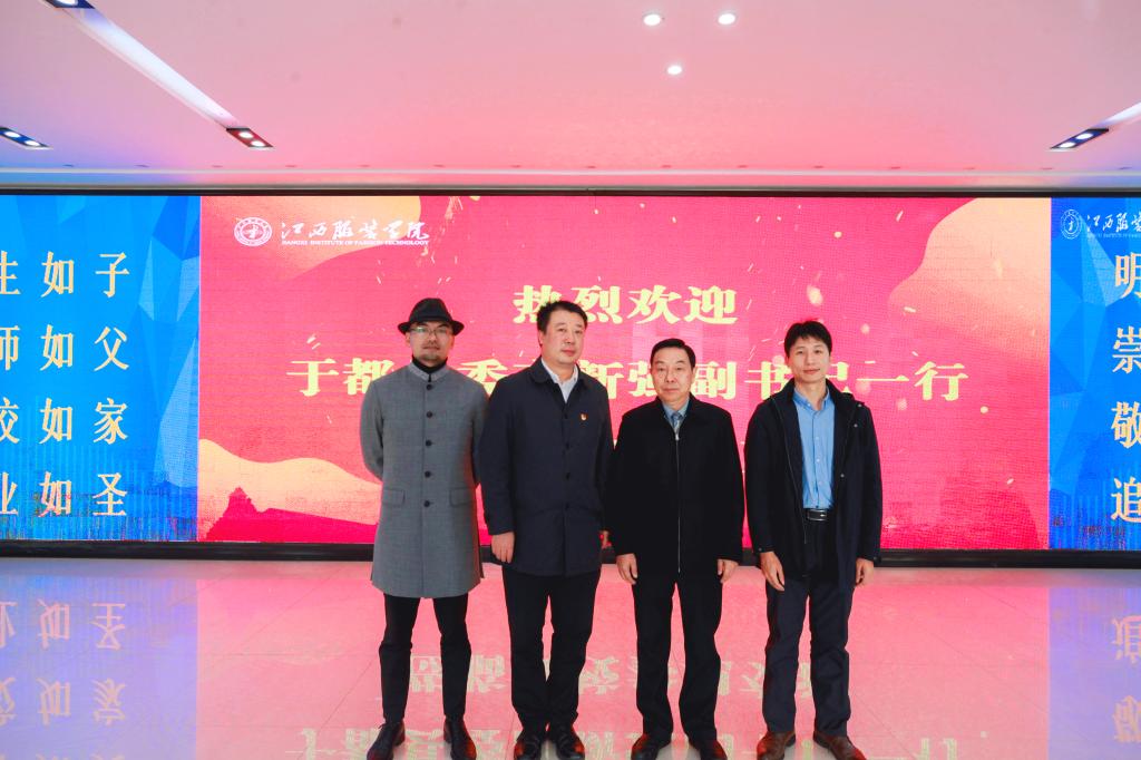 为贯彻落实《国务院关于新时代支持革命老区振兴发展的意见》(国发〔2021〕3号)和《江西省赣南等原中央苏区振兴发展领导小组关于延续省内高等院校及科研机构对口支援赣南等原中央苏区的通知》(赣苏区领〔2021〕1号)文件精神,把江西服装学院的人才优势、研发优势、成果优势与于都资源优势、产业优势、区位优势紧密对接,共同推进于都县区域经济更好的发展。10月26日,于都县委高新强副书记、于都发改委王鹏程副主任与我校校长薛家宝、副校长易城在行政楼二楼会客室进行交流与座谈。