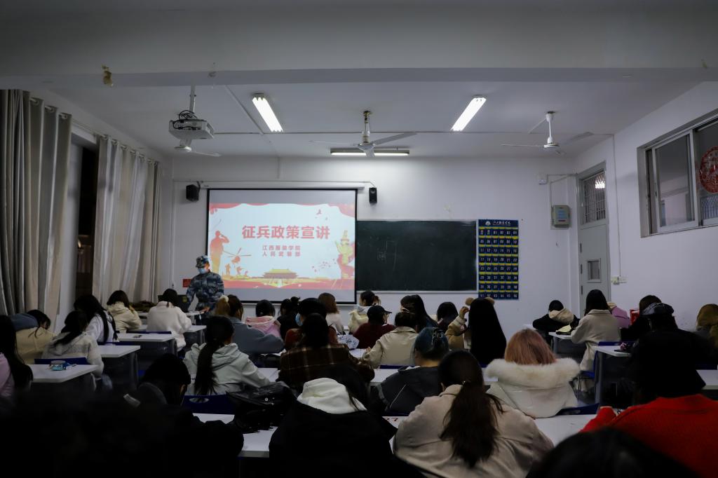 武装部办公室副主任胡康就征兵政策进行宣讲,他就大学生应征入伍优惠政策、发展路径和机遇等方面作了详细的解读。并详细介绍了大学生应征入伍的具体流程、补助标准和发放等情况,鼓励应届毕业生积极投身国防,献身军旅。