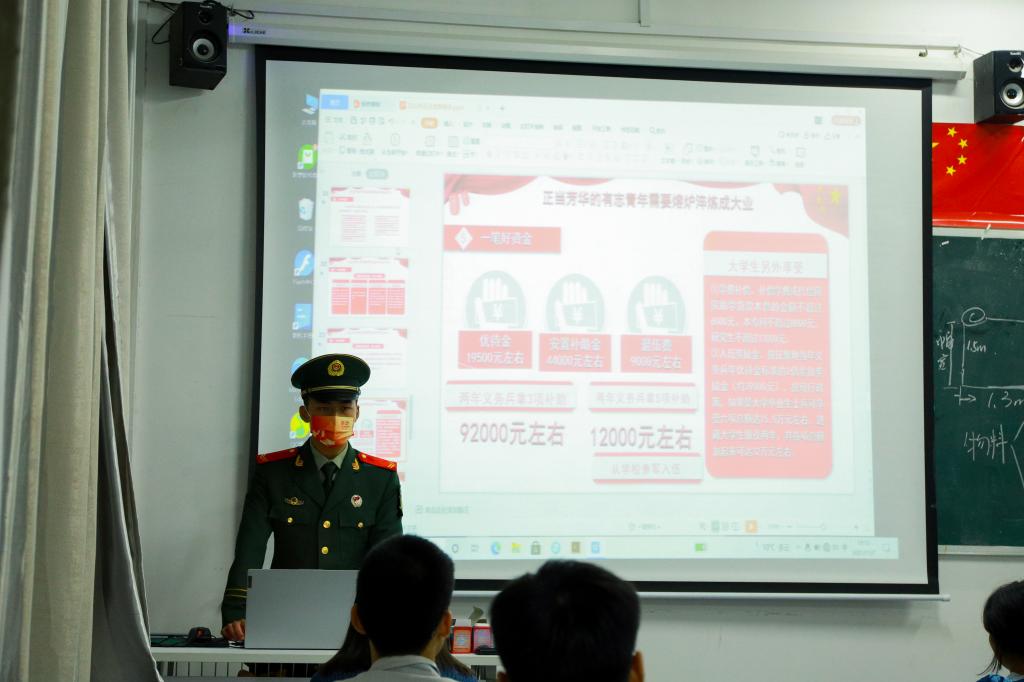 会后,武装部还全面部署了学校“征兵工作宣讲团”进入各毕业生班级进行征兵政策宣讲。