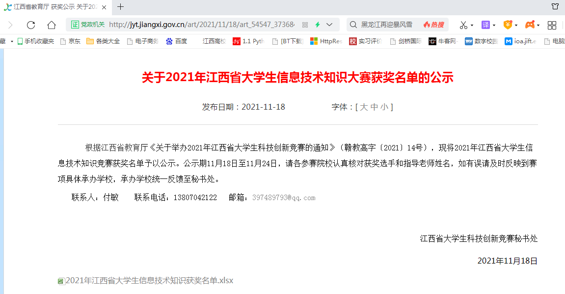 我校学子在2021年江西省大学生信息技术知识大赛喜获佳绩