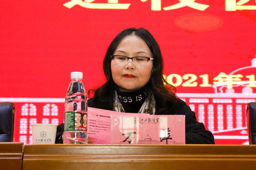 随后由我校赣州籍优秀学生代表发言,表达了学生们对于家乡政府关注自身发展、学校多年来对自己培养的感激之情及了解地方产业发展后对未来回乡留赣就业的渴望。