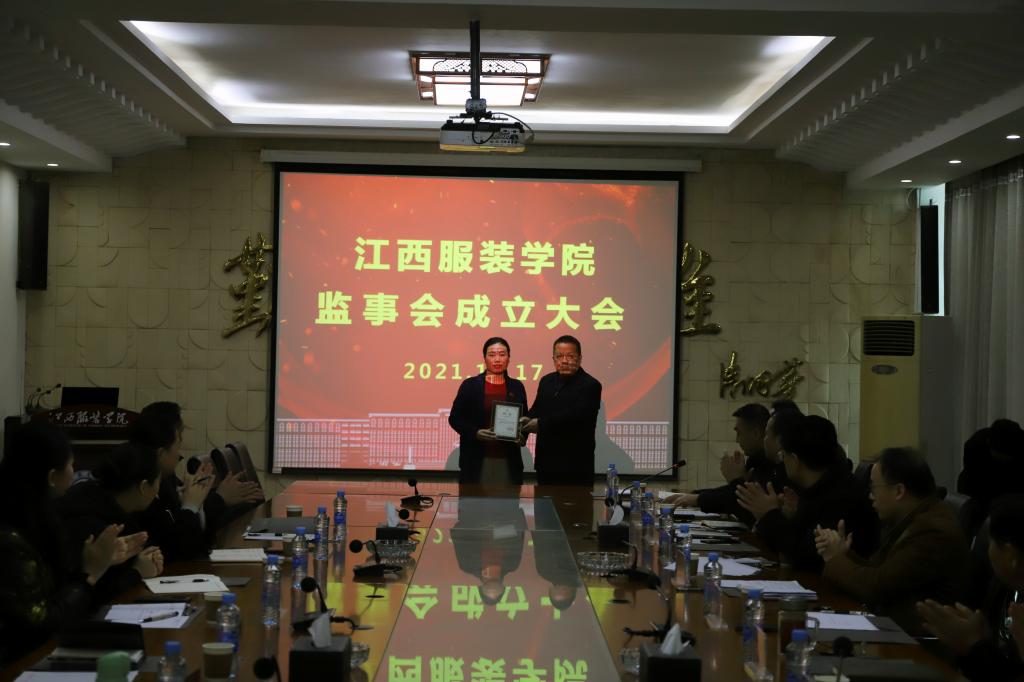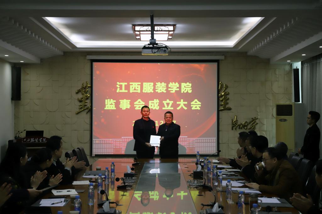 经学校举办者、党委、教代会分别推荐,江西服装学院第一届监事会正式成立,会议通过了学校第一届监事会监事长、监事成员名单。由唐新强担任江西服装学院监事会监事长,成员包括曾冬秀、胡伟。会上,涂顺强理事长为监事会成员颁发聘书。