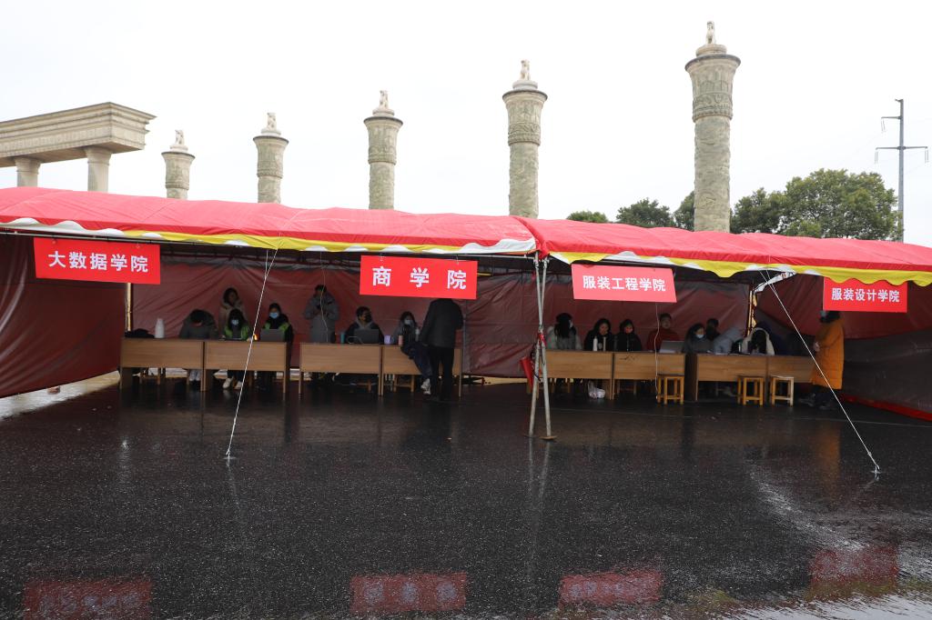 各学院在校门口设置了接待点