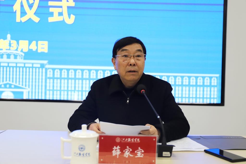 会上,薛家宝校长从为什么要申硕、为什么能申硕和如何做好申硕工作发表重要讲话。他在讲话中指出硕士单位建设是全体江服人的期盼,是学校提升人才培养质量的有效途径,是学校可持续发展的必然选择,也是服务地方经济社会发展的必然选择。我校师资队伍已初具规模,本科人才培养质量稳步提高,科学研究水平逐步提升,办学基本条件比较完善,管理制度已成体系,此次新增硕士学位立项建设,是整合系统力量,推动新突破的必然。