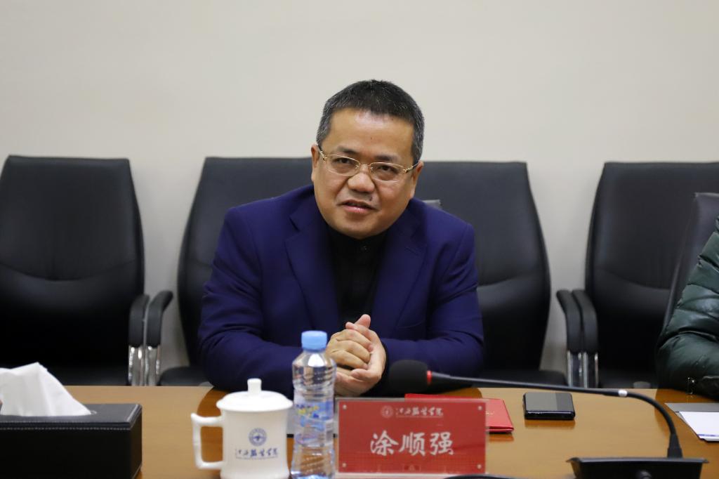 赠书仪式上,涂顺强理事长首先对中国纺织教育学会、中国纺织出版社有限公司一行来访与捐赠表示欢迎与感谢。他表示,江西服装学院由其父涂润华先生于1991年创办,学校创立30余年来在学科建设、人才培养模式、科研平台搭建等方面形成了特色并取得了一定成果。