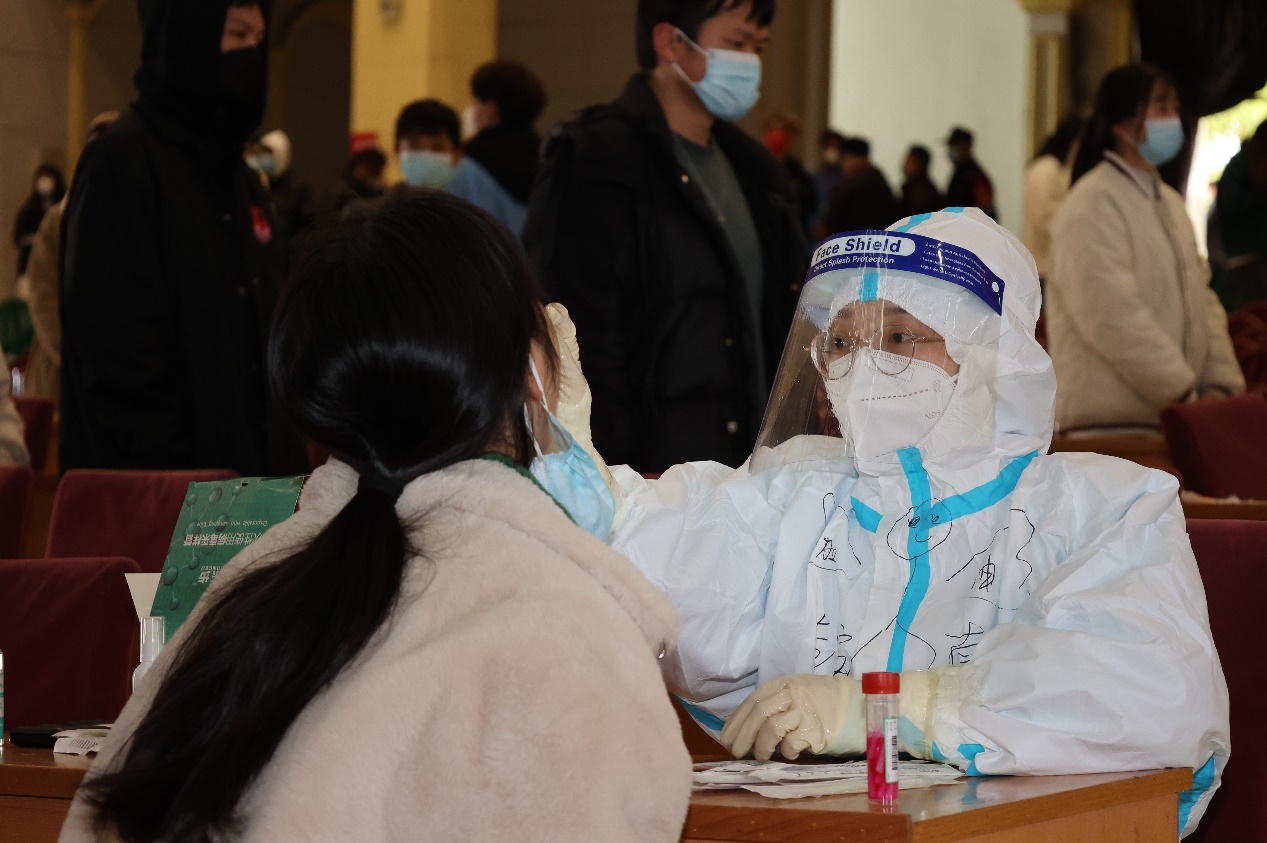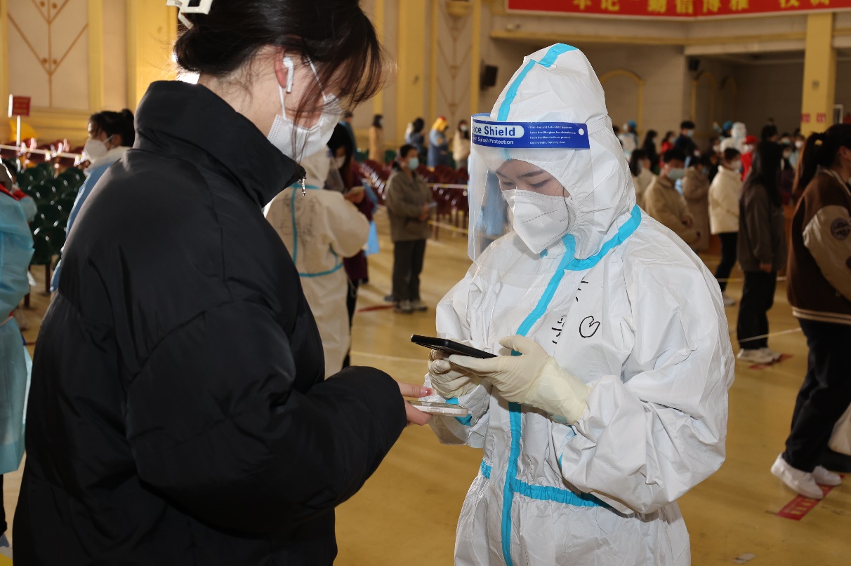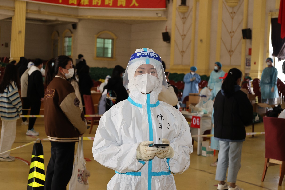很荣幸能够参与协助全员核酸检测,这是个凝心聚力的大工程,我在这期间收获了许多,也充满了感动。记得每次群里一发通知需要志愿者,都会得到许多积极回应;还看到同学们和志愿者们每一次都比上一次做得好,看着同学们自觉按照防控要求有序排队等候和志愿者们充满热情维持现场秩序的身影,我经常会被这种协同有效的场景而感到震撼,他们让我觉得,我们所有人都在奔着同一个目标,做着同一件事情,从而忘记了疲倦。疫情终会过去,等疫情结束,可劲儿吃可劲儿造!想见的人就去见,不等待,别保留。人生太短了,拘谨着就很快过去了。最后,想对所有医护人员说:天使们,谢谢你们,你们辛苦了!想对所有志愿者们说:加油!你们也很棒!