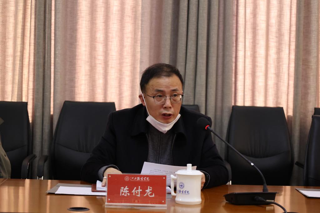 新闻中心讯 4月7日下午,我校在行政楼二楼会议室召开党委理论学习中心组第四次(扩大)学习会,校党委书记陈付龙主持会议并讲话,校党委委员、各学院党总支书记、各机关支部书记参加会议。