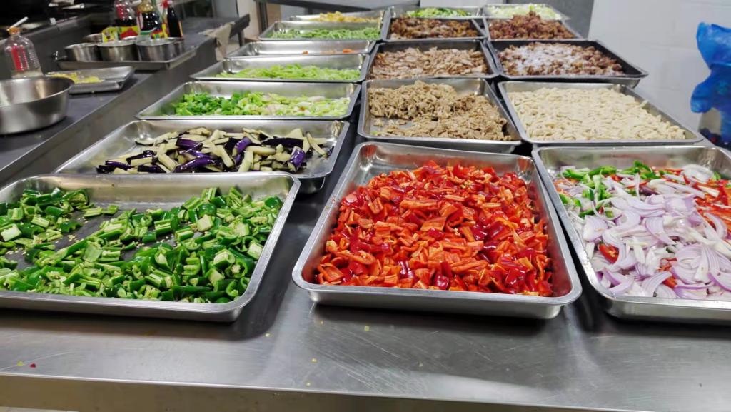 如何让在校一万余名师生的一日三餐吃得放心,吃得暖心,成为疫情防控期间后勤保障部门工作中最为重要的一环。在他们的身后有一群默默无闻的后勤保障“勤务员”,用自己的实际行动助力疫情防控。封校期间,工作量剧增,为了保证校内“零”感染,负责全校师生饮食的“勤务员”们从封控那一天起,就一直坚守一线,携手作战。越是特殊时期,越是要把好饭菜的质量关,荤素搭配,菜肴出新,确保为师生员工提供多样性选择,吃饱吃好。