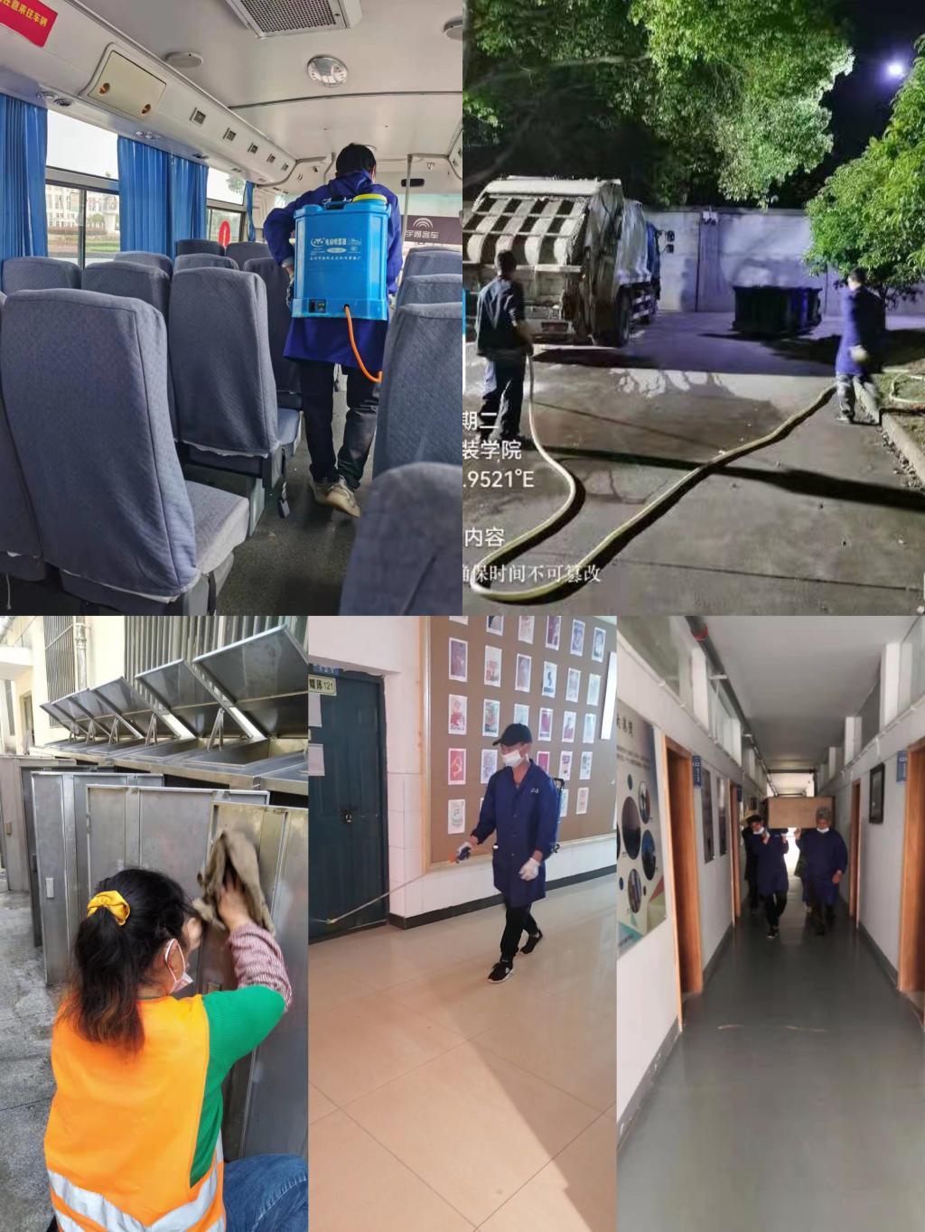 防疫工作重点在防控,关键在治理。特殊时期,疫情防控正是吃紧的时候,必须要保证校内“零”感染,为了做好这项工作,后勤保障部门每天早晨对工作人员进行“三检”,即一码一温一核酸,所有指标正常,方可上岗工作。“防疫就是要搞好卫生、做好消杀,这项工作后勤保障处责无旁贷,由我们上!”后勤保障处负责人张彦春副处长关键时刻带头冲锋陷阵。