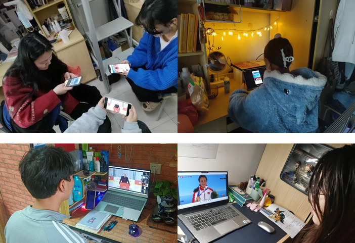 同学们在宿舍中认真观看,仿佛置身于奥运赛场。同上一堂“冰雪”思政大课,共同学习奥运精神是冰雪健儿们的彼此激励、超越自我是中国人民的饱满热情、不懈努力是一个民族的笃行不怠!