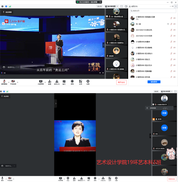 艺术设计学院分团委学生会于4月16日下午2点在腾讯会议共同组织观看同上一堂“冰雪”思政大课,学院分团委学生会全体成员观看学习。
