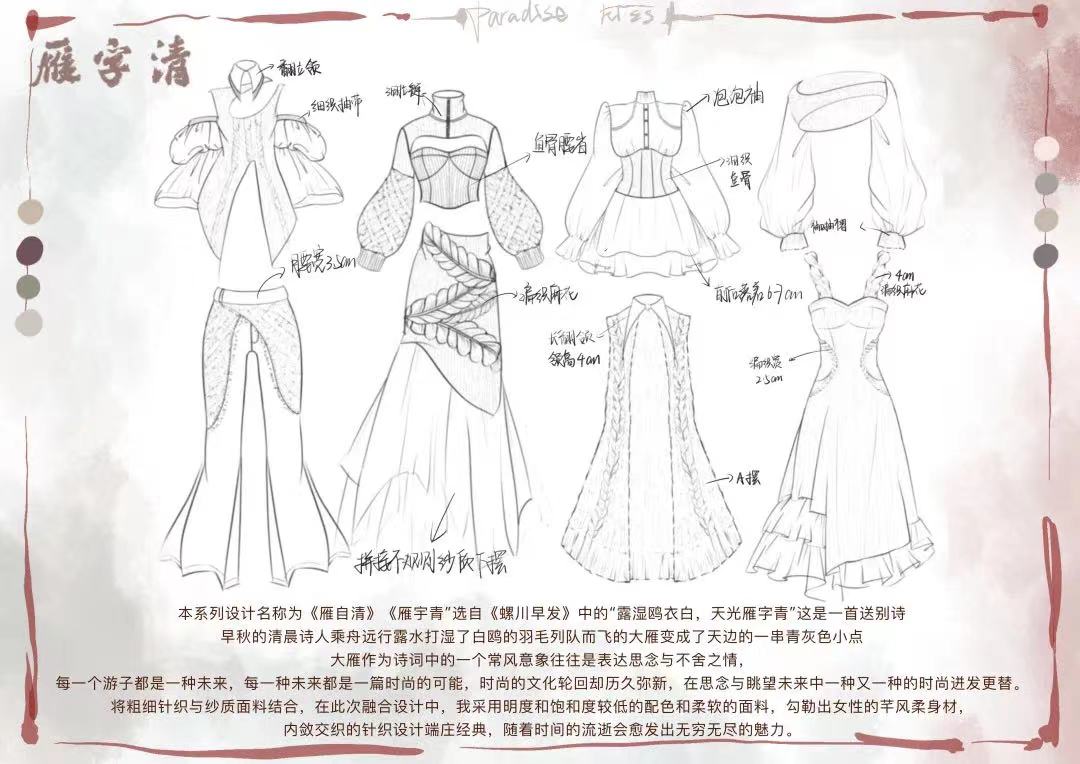 短暂的一个月线上教学实践,江西服装学院线上教学积累了丰富的经验,形成了鲜明的特色与亮点。理论学科网课体系秉持着“因材施教”,以知识为导向,以学生兴趣为出发点,采取任务型教学方法,优化教学设计,创新教学方法,录制短视频为课堂扩容,加强课中和课后的对话联系,有效提升了课堂教学的学习效率。学生的网课笔记也缤纷特色,同学们将自己的课堂收获与学习后记通过各种方式记录下来,清新飘逸的字迹,行云流水的线条,色彩分明的设计图,层次鲜明的思路......呈现的是线上课堂内一个个知识点的深刻烙印。实践是检验真理的唯一标准,同样实践也是检验教学效果的唯一标准,学生的作品则直接呈现学生线上课堂掌握的程度。