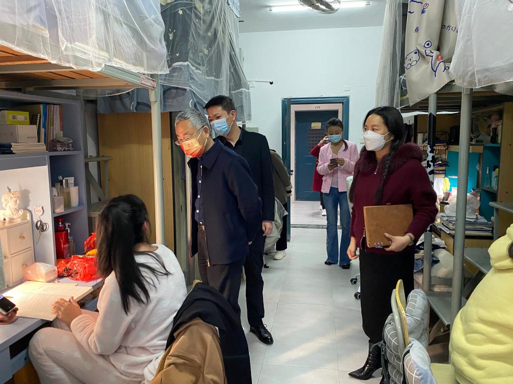 线上授课期间,学校高度重视学生线上教育教学管理工作,校领导多次走访学生宿舍,了解学生身体和心理状态,通过询问、查看学生作业、查看学习笔记、学习计划等方式了解学生们在疫情期间的思想动态和线上学习情况,重点询问了学生们线上学习遇到的问题和困难;建议学生合理安排时间,遵守线上课堂纪律,养成良好的学习和生活习惯,圆满完成线上学习任务。同时,校领导勉励同学们在宿舍学习也要加强体育锻炼,保持积极阳光的心态,以健康的身心高效完成网课学习任务。