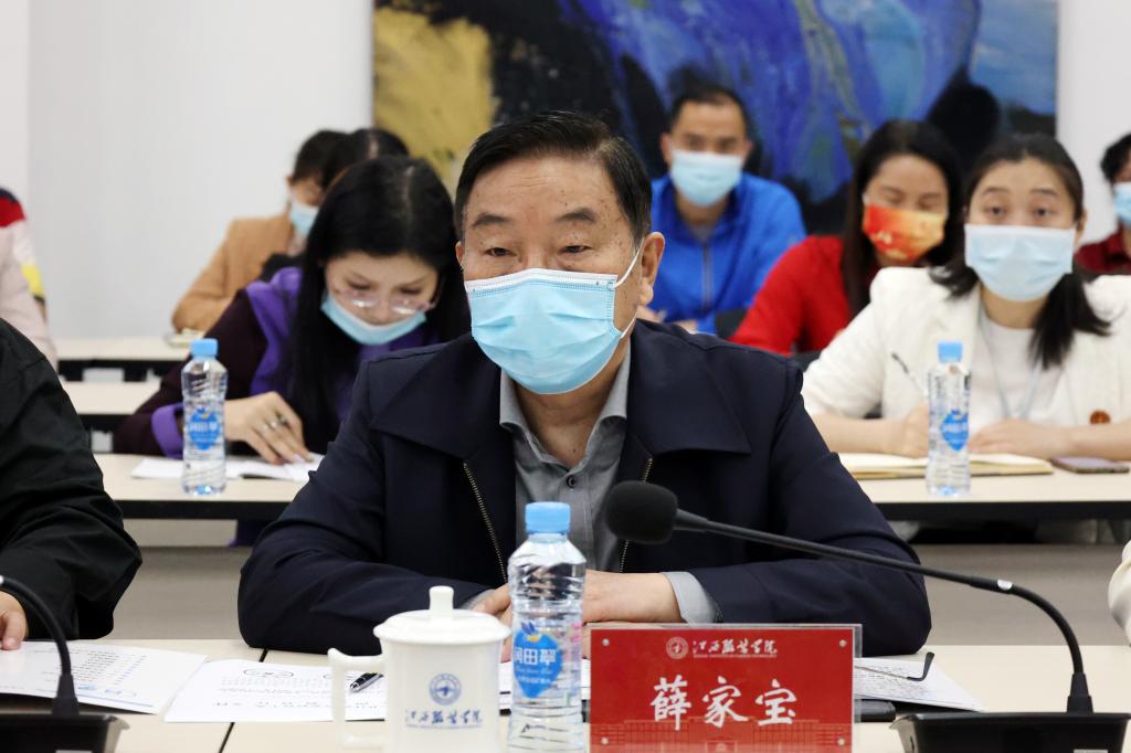校长薛家宝作2021年年检自查情况汇报。他从2021年主要工作成绩、年检工作组织实施情况、去年年检反馈问题及整改情况、自查自评加分依据、自查自评扣分情况等五个方面汇报了我校2021年度年检自查情况。