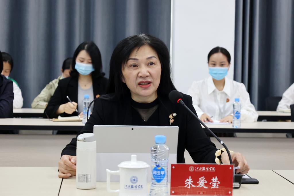朱爱莹主持会议并发表讲话。她首先介绍了本次年检工作的要求、年检内容和流程安排,并在座谈会上作《江西省规范民办高校办学行为三年行动计划(2022-2024)》(以下简称《计划》)政策宣讲与解读分享。朱爱莹详细介绍了《计划》出台的背景,主要的精神和内容,从“问题导向”“目标导向”和“行动导向”三个导向解读层面,详细解读了《计划》的五个全面规范、四个保障措施、三个阶段任务、15个具体举措等方面内容,强调全校师生要在今后的三年工作过程当中,能够更准确更深刻的理解文件当中的精神实质、根本道理和行动要求,规范办学行为,使学校办学水平迈上新台阶。