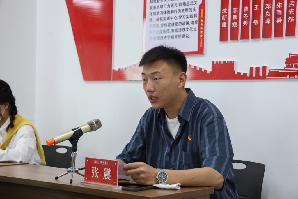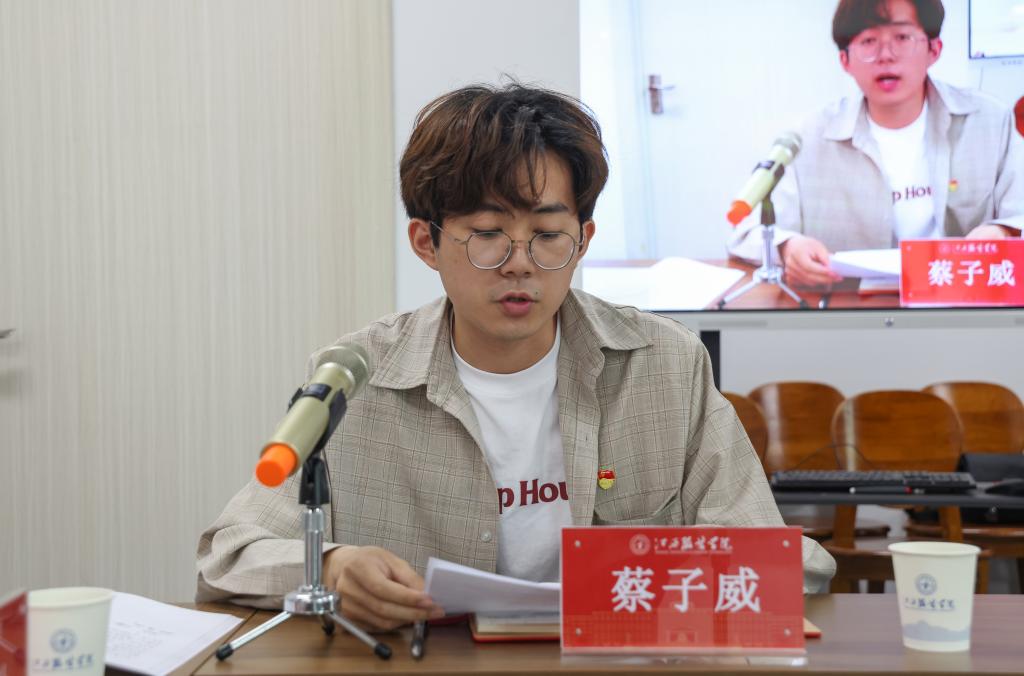 校党委委员、宣传部部长沈新建传达学习了习近平总书记在庆祝中国共产主义青年团成立100周年大会上的重要讲话精神;校团委书记孟安然、校团委专职团干张震、学院分团委书记蔡子威,“中国大学生自强之星”获奖代表王幸俊、“中国最美大学生”参评代表毛凤君、校团史宣讲比赛获奖代表都雨涵、“青马工程”培训班学生代表刘倩做了发言,分享了学习的体会、奋斗的经历和成长的感悟;与会人员共同观看了视频《新时代答卷》。