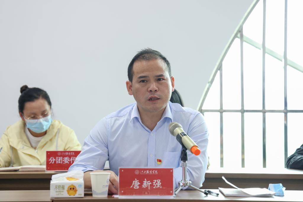 唐新强希望全校团员青年要认真学习陈付龙书记的讲话,牢记自觉树立起人生志向,自觉与伟大的时代、伟大的祖国同频共振,树立休戚与共、荣辱与共、生死与共、命运与共的共同体理念,在祖国和人民最需要的地方建功立业,希望广大江服青年继续发扬“明德弘毅、崇艺尚美、 敬业奉献、追求卓越”的江服精神,让青春与祖国同行、让青春的汗水挥洒在耕耘奋斗之路上,为服装强国建设贡献青春力量,以实际行动为学校特色鲜明的高水平应用型大学的建设做出一名江服学子应有的贡献,以优异成绩迎接党的二十大胜利召开。