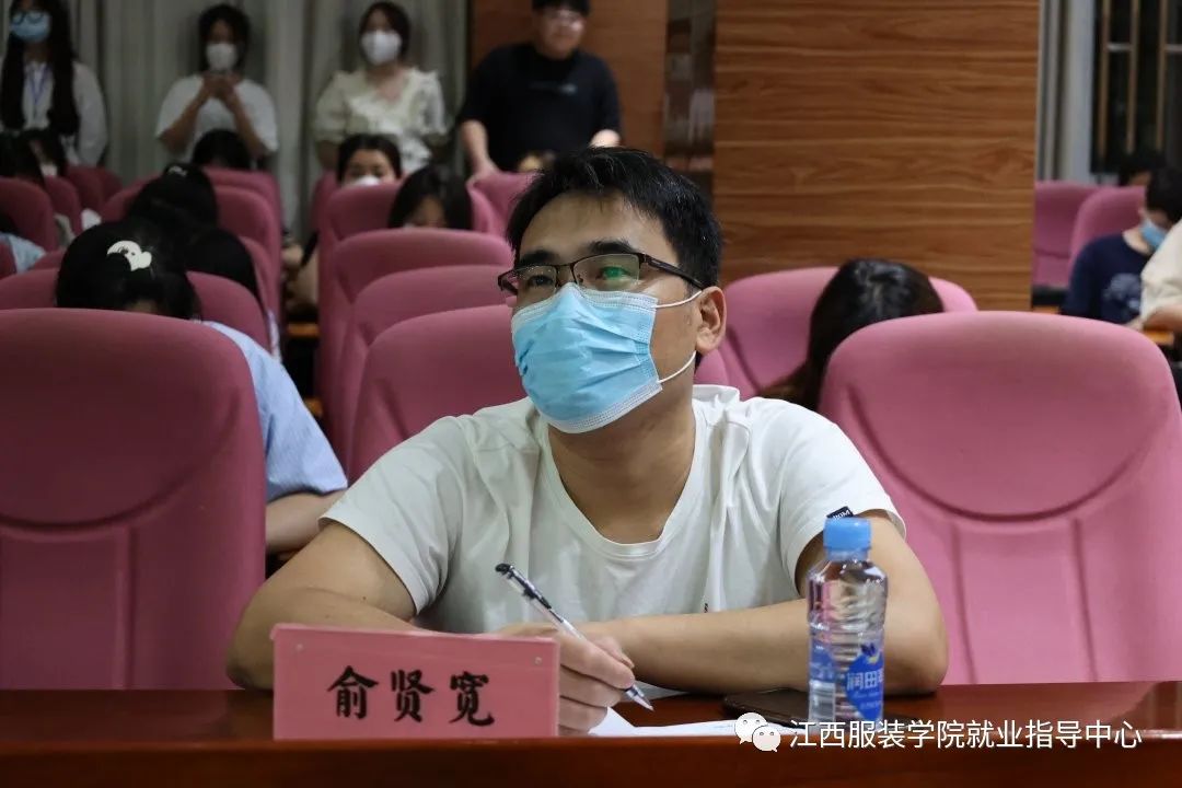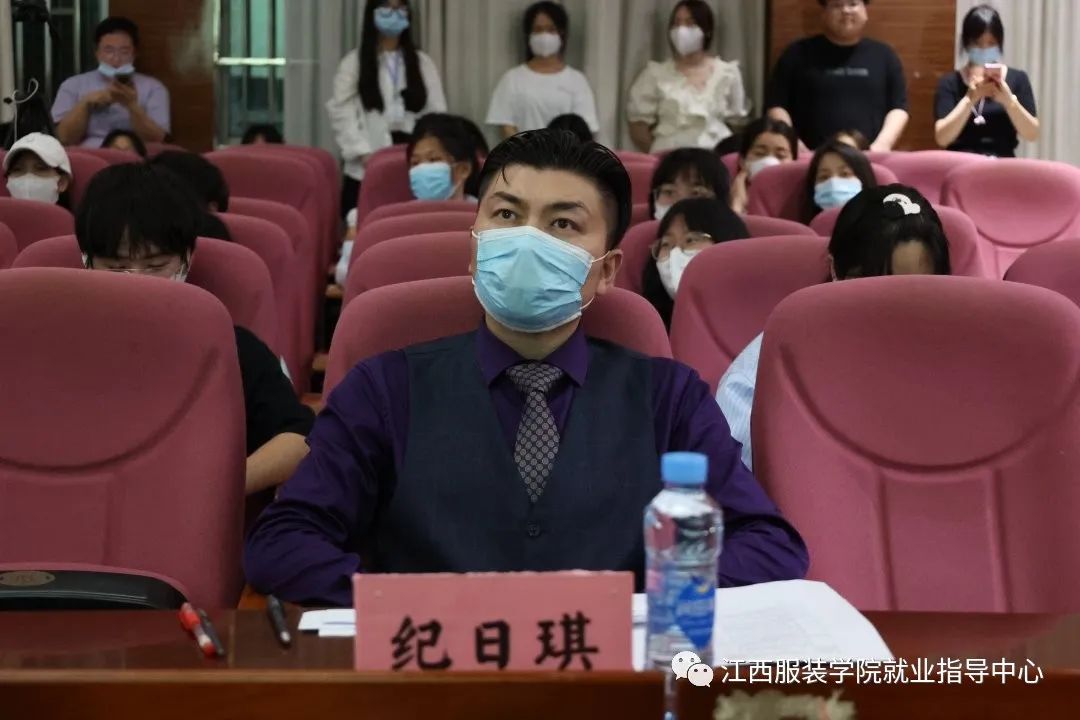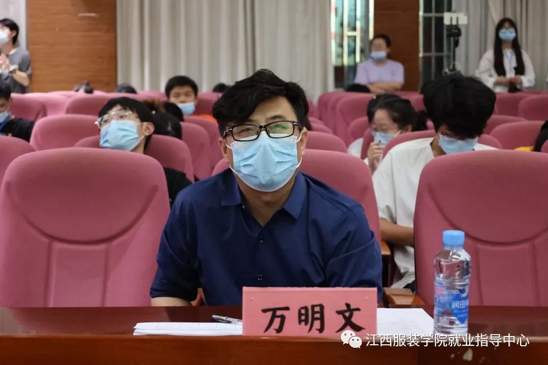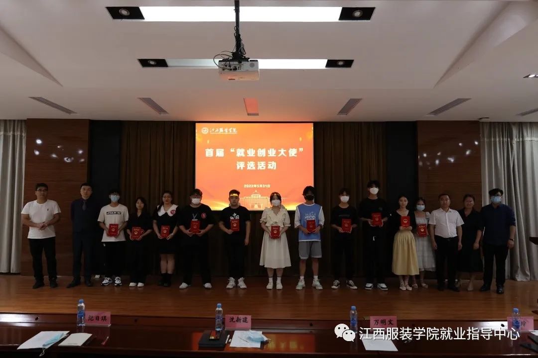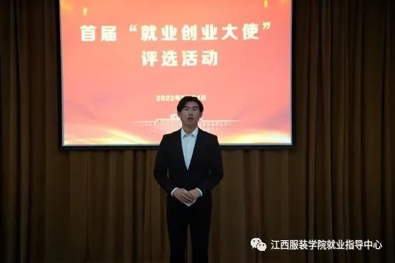 2022年5月31日晚19:00,江西服装学院首届“校园就业创业大使”评选活动在行政楼一楼报告厅成功举办。我校党委宣传部部长沈新建,上海除纬服饰有限公司经理纪日琪,上海汉晨服饰设计中心经理万明文以及江西服装学院就业处副处长李玲,江西服装学院创新创业学院教研室主任俞贤宽担任本次评选活动评委。大学生职业发展协会以及部分在校学生代表共同观摩了此次比赛。