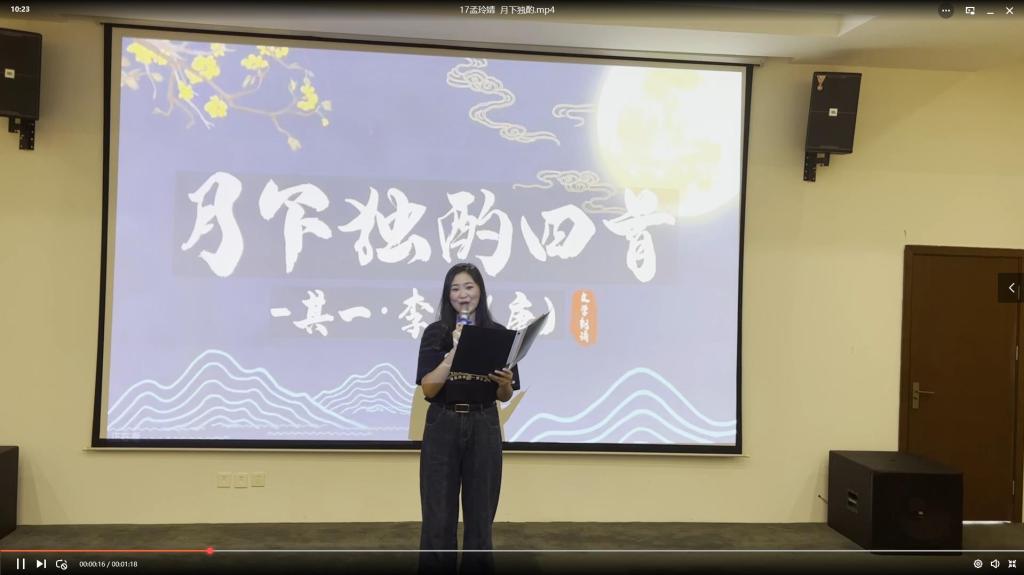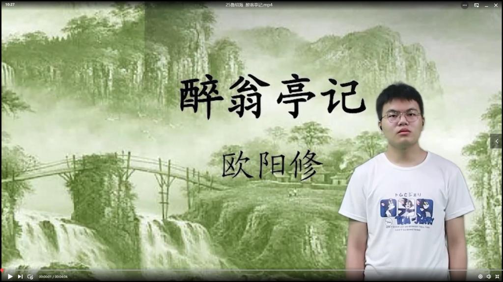 历史沉淀峥嵘岁月,经典镌刻奋进步伐。不忘初心,砥砺前行,诵读经典书籍,溯源百年初心。同学们—一朗诵了李白、杜甫、王维、孟浩然、陆游、辛弃疾等著名诗人的经典诗作。“君不见黄河之水天上来,奔流到海不复回。”钱亚轩同学的一首《将进酒》穿越时间的长河,让我们感受到了震动古今的气势与力量,也感受到了诗仙李白那充实深厚的内在感情,和那潜在酒话底下如波涛汹涌的郁怒情绪。“对酒当歌,人生几何!”梁容豪同学一曲《短歌行》将曹操建功立业的豪情壮志和求贤若渴的心情娓娓道来。诗的画卷已由古到今徐徐展开,同学们诵读原著培塑信仰、充实头脑,在原著中汲取力量、感悟情怀,在学思践悟中坚定理想信念,在知行合一中筑牢信仰之基。