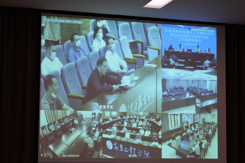 新闻中心讯 5月30日下午,江西省教育厅组织召开全省高校安全稳定工作暨校园及周边治安综合治理专项组工作调度视频会议,省教育厅厅长郭杰忠出席会议并讲话,省委网信办、省公安厅、省卫健委等相关负责同志出席会议。会议由省委教育工委委员、省教育厅副厅长汪立夏主持。我校在行政楼一楼报告厅设立分会场,党委书记陈付龙,党委副书记唐新强,党委宣传部、学工处、保卫处、校团委等部门负责人和二级学院党总支负责人参加会议。