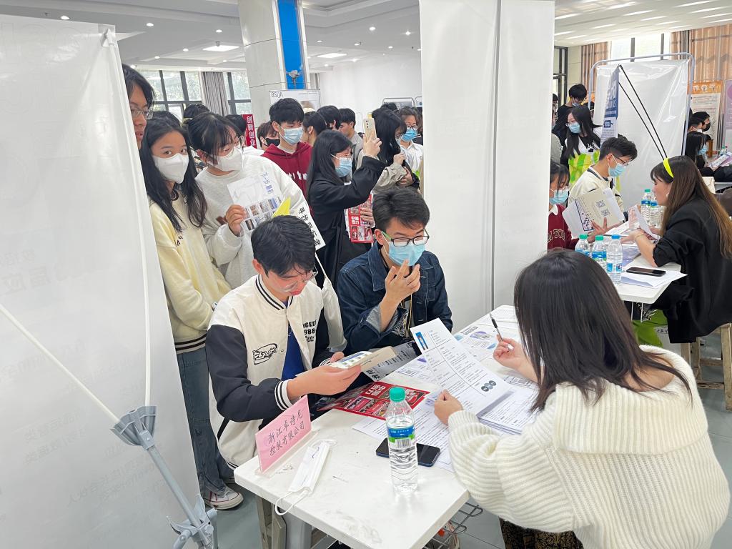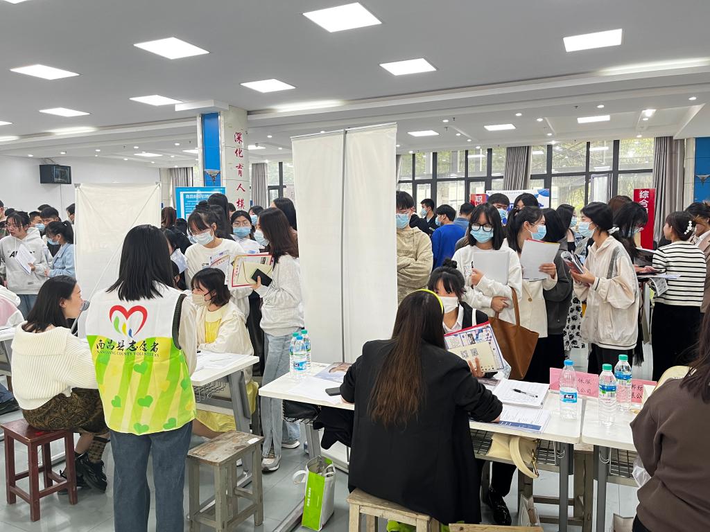 11月8日上午9时,福建专场的70余家企业莅临我校思贤楼进行招聘活动,本场招聘会有福建泉州匹克体育用品有限公司、安踏集团江西分公司、贵人鸟股份有限公司等知名服装纺织企业。共计提供了包括研发、设计、管理、财务、电商主播等在内的2150个岗位,共投递简历600余份。在招聘会现场,毕业生们仔细阅读用人单位招聘简章,手持简历,着装整洁,与企业人员进行面对面交流后,再按照自己的求职意向投送简历面试,一切在井然有序进行。