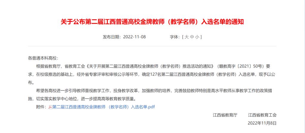 喜报‖我校戴沂君老师获评第二届江西省普通高校金牌青年教师