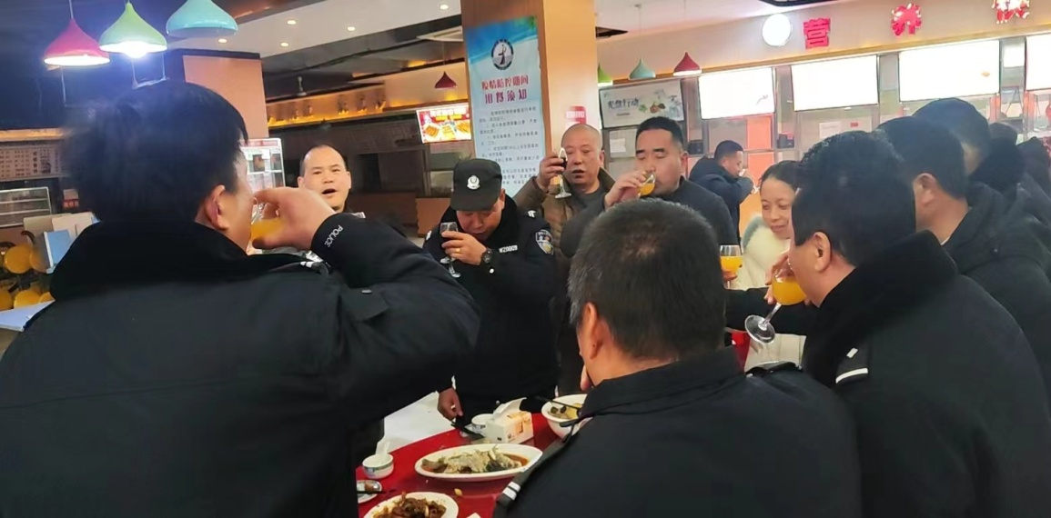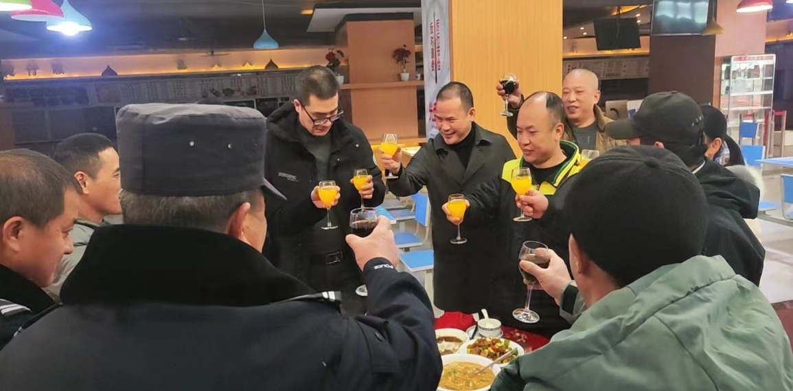 席间欢声笑语,觥筹交错。唐新强副书记与大家高举酒杯,和乐融融。