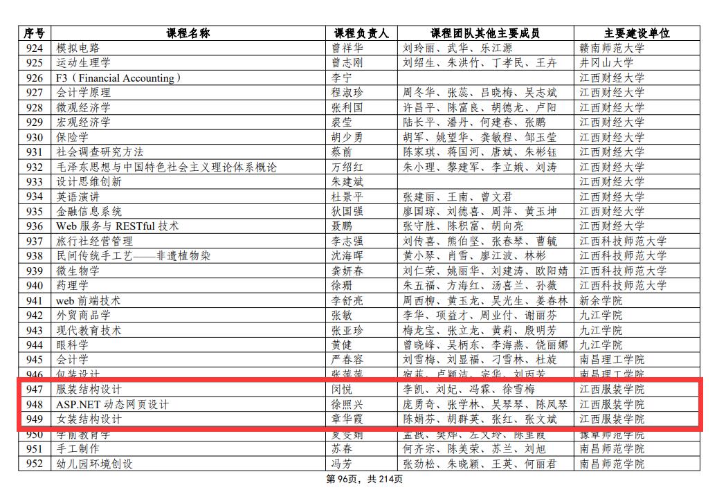 近日,教育部公示第二批国家级一流本科课程认定结果,我校《服装结构设计》《动态网页设计》《女装结构设计》3门课程荣列榜中,拟认定为线上线下混合式一流课程。至此,学校共获批国家级一流课程5门。