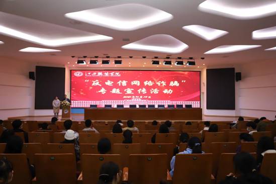 为落实校园防范电信网络诈骗工作,切实提升师生的安全防范意识,保障师生生命财产安全,增强师生识别和应对网络诈骗的能力,11月19日下午,我校联合向塘派出所在思贤楼三楼报告厅开展了以“反电信网络诈骗”专题宣传活动。各学院师生代表共200余人参加了此次活动,本次宣传活动由保卫处处长鲍鹏主持。活动现场,由2021年全省公共安全教育骨干教师教学能力竞赛中获得二等奖的杨丹老师给在场的师生讲授了一堂精彩的防诈骗微课—《...