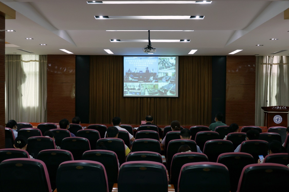 新闻中心讯 5月30日下午,江西省教育厅组织召开全省高校安全稳定工作暨校园及周边治安综合治理专项组工作调度视频会议,省教育厅厅长郭杰忠出席会议并讲话,省委网信办、省公安厅、省卫健委等相关负责同志出席会议。会议由省委教育工委委员、省教育厅副厅长汪立夏主持。我校在行政楼一楼报告厅设立分会场,党委书记陈付龙,党委副书记唐新强,党委宣传部、学工处、保卫处、校团委等部门负责人和二级学院党总支负责人参加会议。...