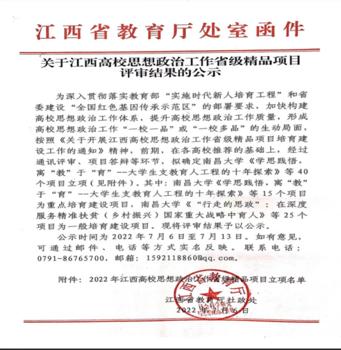 喜报|我校获批江西省高校思政工作省级精品项目立项